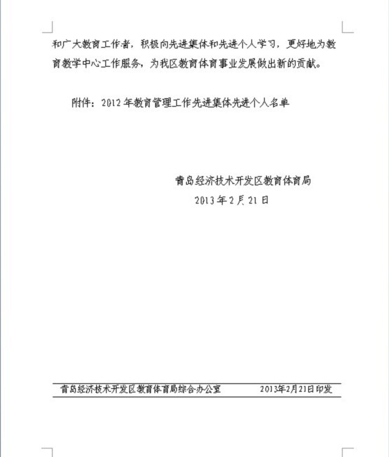 我校01级英语专业校友张浩创办的开发区同文语言培训学校,受到青岛市开发区教育体育局表彰,获得”民办教育先进单位“称号,开发区共有十家单位获此殊荣。