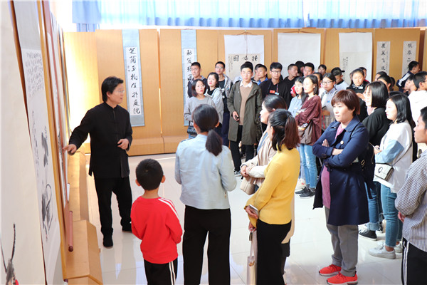 展览接近尾声,大家一起合影留念。李荣明表示,希望通过这次作品展能够培养同学们的艺术情操,增加同学们对艺术的了解。