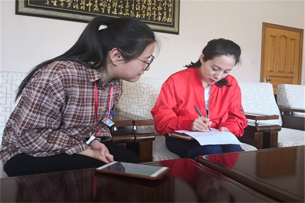 近日,我校2002级法律专业校友秦燕回到母校,校友工作办公室主任张婷婷在岱德楼会议室热情的接待了秦燕。