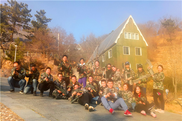 午饭过后,大家前往白果山森林公园,进行了一场真人CS大战。校友们分成两组,在游戏中团结一致,相互帮助,完成一个又一个挑战。