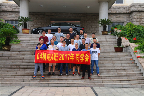 首先,校友们在北校区门口集合,即使校友们来的时间各不相同,来得比较早的校友愿意等待晚来的同学,只因为他们坚信同学们一定会来。当年的班长带领他们前往嵩德楼集合。他们按着一定的队形站立,手拉横幅,上面写着“04机电4班2017同学会”的字样,“同学会”看似简单的三个字,却饱含了深厚的同学情。校友们在此拍照留念,他们的同学情也在此留下了不可磨灭的痕迹。