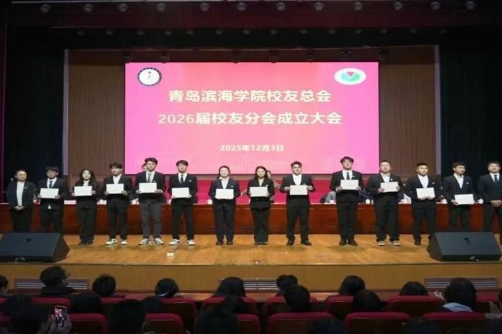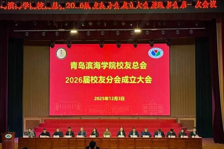 为凝聚2026届毕业生力量,搭建校友与母校、校友与校友间的沟通桥梁,传承滨海精神,精准对接校友需求、聚合细分领域资源,提升校友凝聚力与联动效率,2025年12月3日,青岛滨海学院校友总会2026届校友分会成立大会在小珠山校区大礼堂顺利召开。副校长孙瑛,学生处处长、校团委书记徐兆娟,学生处副处长、校团委副书记王丽娜,校友总会副会长高玉志,毕业学院工作干事,筹备组组长、校学生会轮值主席戴文昊以及各学院毕业生代表出席会议;大珠山校区学院工作干事与毕业生代表在图书馆报告厅分会场参会。校友工作办公室主任陈青华主持本次大会。