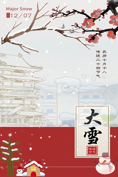 作为冬三月的第三个节气,大雪后气温骤降,雪落更频,山河裹素,鸟兽匿迹。世间少了喧嚣,多了几分静谧——炉烟绕窗,梅香浸雪,既藏着对瑞雪的期盼,也藏着岁末待春的安然。