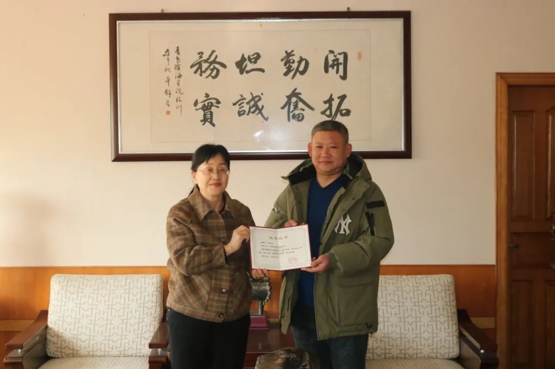 崂山区一见茗露绿石总经理高佳欣校友为母校捐赠一方崂山试金石,赞助三方崂山海底玉文房石供校友年会抽奖互动。