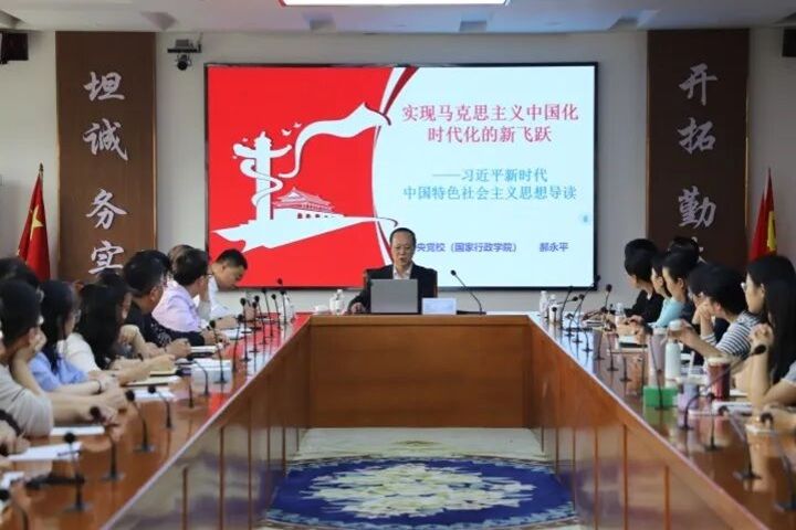10 月 16 日,中共中央党校(国家行政学院)教授、博士生导师郝永平(南开大学哲学博士,兼任中国辩证唯物主义研究会副会长,长期深耕习近平新时代中国特色社会主义思想研究,著述丰硕且曾参与党的二十大相关工作)应邀赴青岛滨海学院,在岱德楼五楼会议室作 “实现马克思主义中国化时代化新的飞跃 —— 习近平新时代中国特色社会主义思想导读” 专题报告,校党委书记车滨等党委理论中心组成员、基层党组织代表及马克思主义学院教师聆听报告。报告围绕 “实现飞跃的历史条件、理论支撑和实践成效” 展开,剖析思想创立背景与内涵,展现实践伟力,历时两个半小时,引发热烈反响。与会者认为报告兼具思想性与指导性,为学校党建和思政工作注入活力。