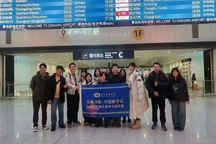 1月4日上午,“岛城寻韵·中医研学记”台湾青年学生来青交流活动开营仪式在青岛滨海学院大珠山校区举行。十余名台湾中医系的青年学生,与青岛滨海学院师生代表齐聚一堂,共同开启为期5天的中医文化研学之旅。