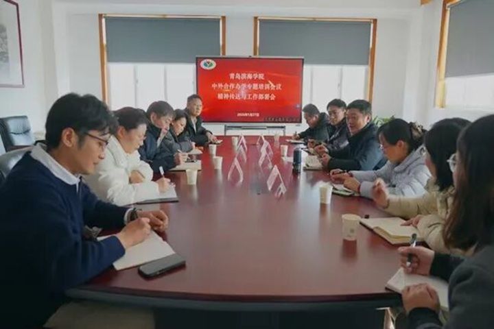 1月27日,青岛滨海学院中外合作办学专题培训会在岱德楼401会议室召开。副校长翟明戈主持会议并部署工作,机电工程学院、国际交流与合作处、教务处、学生处、招生办公室、宣传部、财务处等相关部门负责人参加会议。
